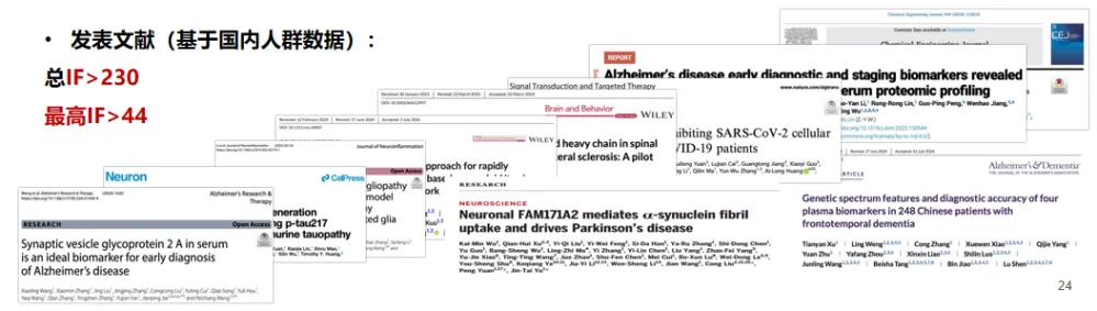 同時(shí),宇測(cè)生物樹(shù)立國(guó)內(nèi)AD血液生物標(biāo)志物學(xué)術(shù)影響旗幟,不斷推進(jìn)以神經(jīng)科學(xué)為核心的新型生物標(biāo)志物的臨床轉(zhuǎn)化與市場(chǎng)推廣,與國(guó)內(nèi)多家頭部醫(yī)院形成深度合作,發(fā)表多篇高影響力學(xué)術(shù)論文。目前在高端科研和頭部臨床單位已完成兩萬(wàn)多例血液樣本研究,參與多項(xiàng)國(guó)內(nèi)大型隊(duì)列研究,平臺(tái)累計(jì)發(fā)表IF>230,為神經(jīng)科學(xué)超敏血液生物標(biāo)志物的疾病的研究提供最強(qiáng)助力。